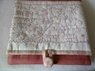 First finished was a Gail Pan Pincushion, I then got the needle case and sewing bag cut out, I have the appliqueing to do before I can assemble them and they will be finished.